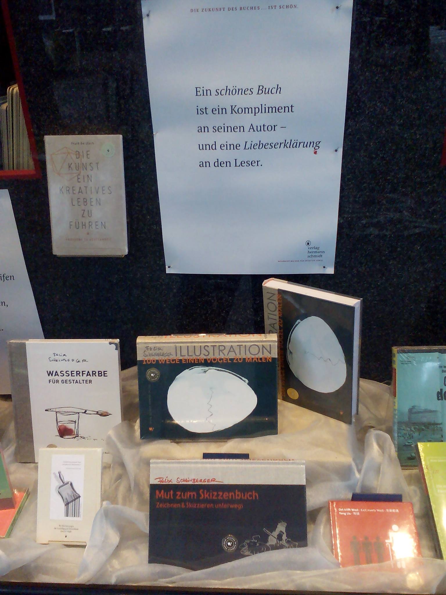 Allesamt besonders sind natürlich die wunderschönen Bände der Anderen Bibliothek und natürlich sind wir sehr stolz, seit diesem Jahr – dazu noch im Jubiläumsjahr – Partnerbuchhandlung der Anderen Bibliothek zu sein! Ebenso haben wir eine große Auswahl der außergewöhlich schön gestalteten und mit Liebe gemachten Bücher aus dem Verlag Hermann Schmidt – „Mehrwert-Bücher für kreative Köpfe“!